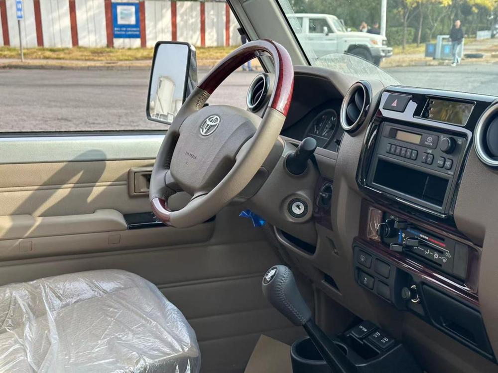 外观方面,2023款丰田酷路泽LC71保留了经典的复古设计,方正的车身线条、硕大的前保险杠、坚固的车架以及宽大的车轮,无不彰显其硬汉气质。独特的绿色涂装,使其在荒野中更显独特。车头经典的“牛头标”搭配丰田的logo,彰显了其不凡的身份。