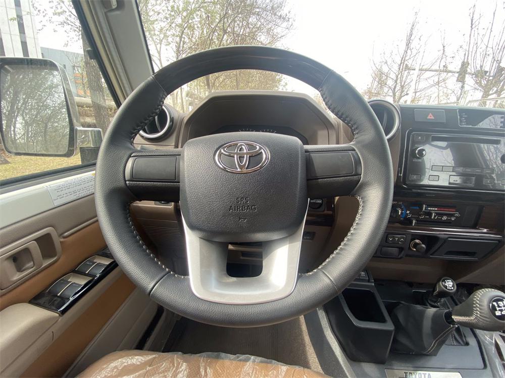TOYOTA中网,外拓轮眉,棕色真皮、双差、桃木内饰、桃木方向盘、真皮座椅,130升油箱、20L备用油箱,分时四驱、车身彩条 熏黑套件,后排左右门烟灰缸,熏黑铝轮,后备箱喇叭
